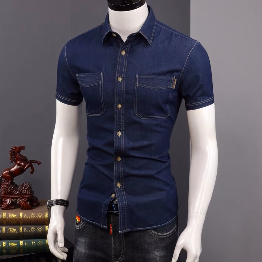 Áo sơ mi cộc nam giả bò chất liệu Polyester phong cách thể thao slim fit – Lựa chọn hoàn hảo cho mùa hè