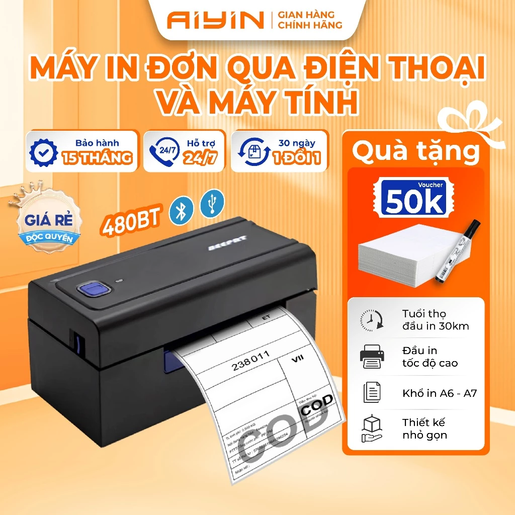 🔥 [VOUCHER 100K MUA TRONG LIVE] Máy In Nhiệt Bluetooth AYIN 480BT, Máy In Đơn Sàn TMĐT Khổ A6 A7, In Mã Vận Đơn đang giảm giá!