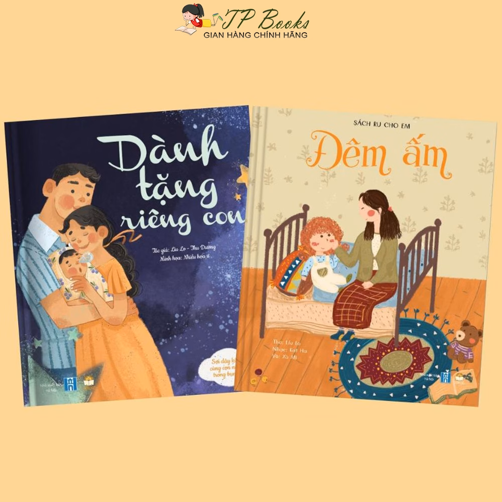 - Sách – Combo Thơ Ru Cho Mẹ Và Bé: Đêm Ấm + Dành Tặng Riêng Con – Bìa Cứng: Cuốn sách này có nội dung về tình yêu, gia đình và cuộc sống, phù hợp với lứa tuổi từ 0-6 tuổi.
