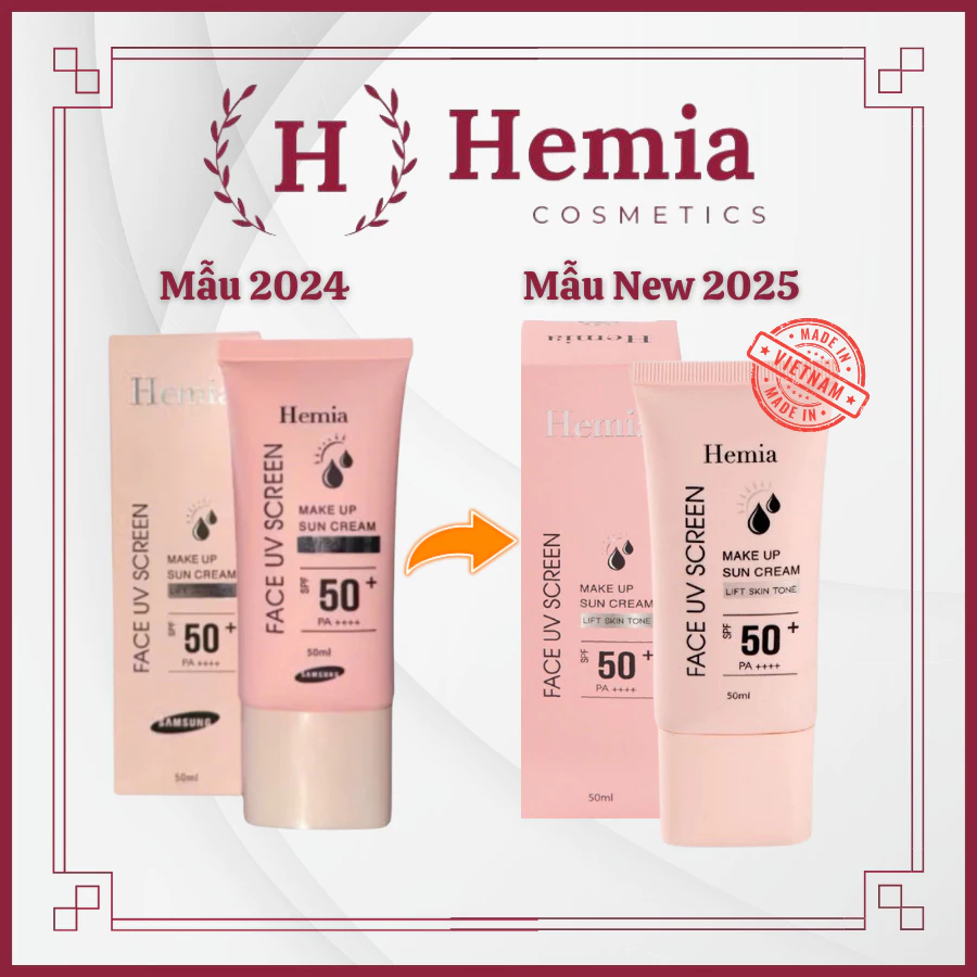 Kem chống nắng Hemia dưỡng trắng make up bảo vệ da, chống lão hóa cũng chứa các thành phần chống lão hóa, như vitamin C và E, để giúp da trở nên mịn màng và tươi sáng hơn.